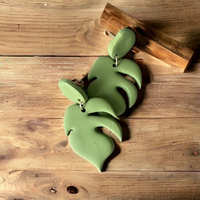 Handgemaakte oorbellen gemaakt van polymeerklei en hypoallergene chirurgische vergulde roestvrijstalen kogelknoppen voor gevoelige oren.