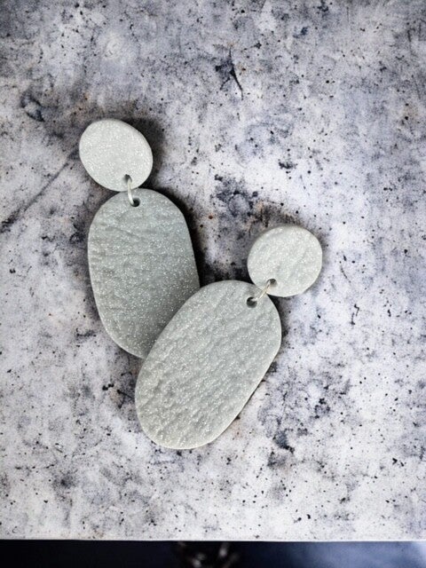 Handgemaakte oorbellen gemaakt van polymeerklei en hypoallergene chirurgische vergulde roestvrijstalen kogelknoppen voor gevoelige oren.
