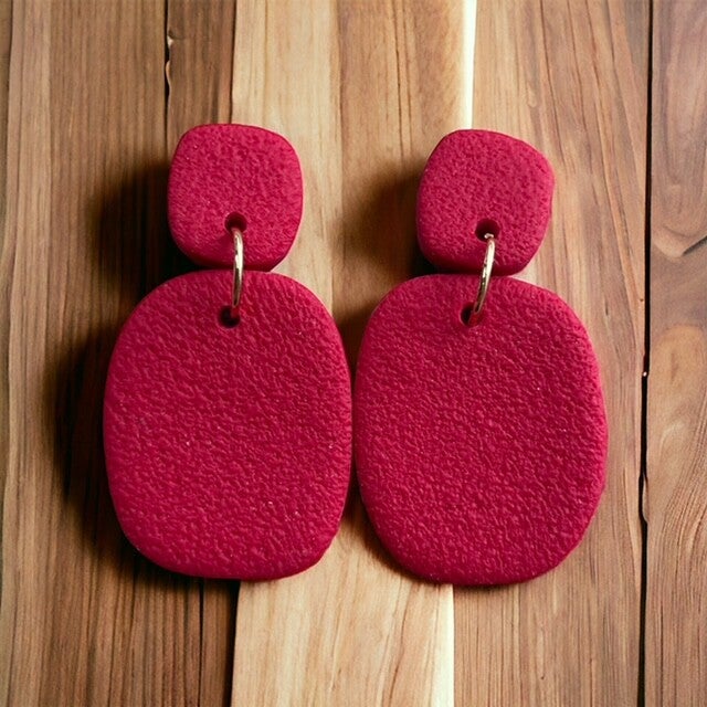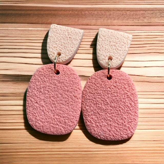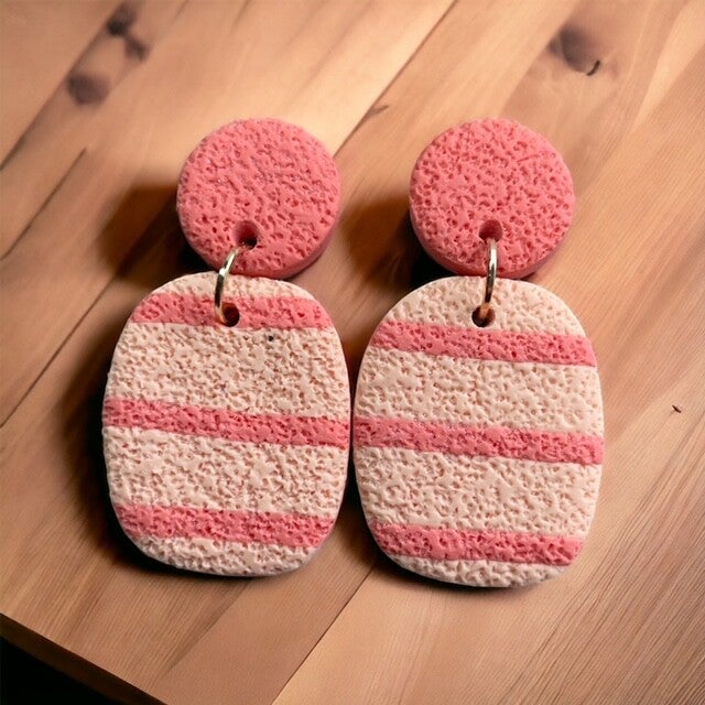 Handgemaakte oorbellen gemaakt van polymeerklei en hypoallergene chirurgische vergulde roestvrijstalen kogelknoppen voor gevoelige oren.